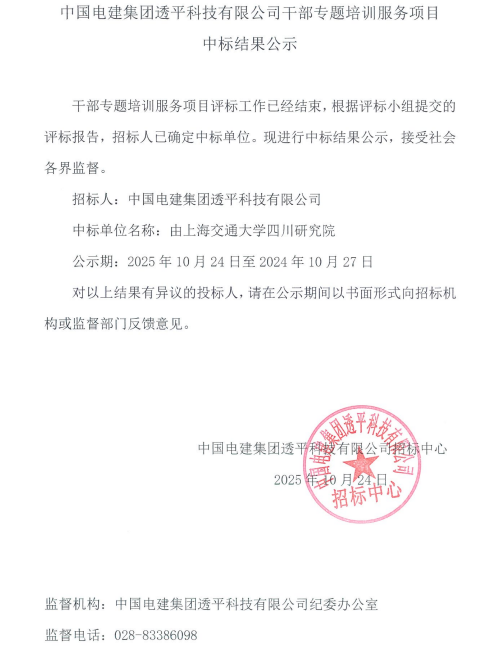 中国电建集团透平科技有限公司干部专题培训服务项目中标结果公示